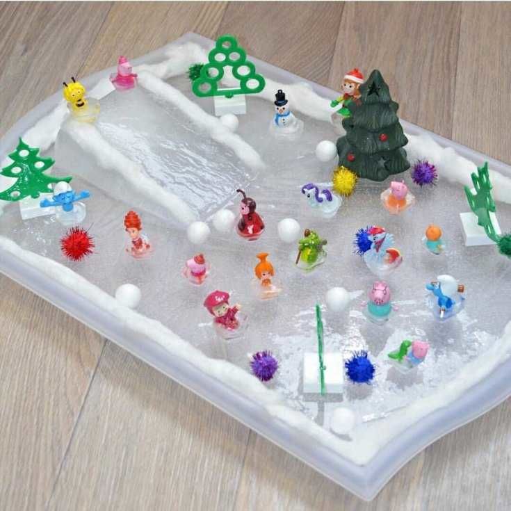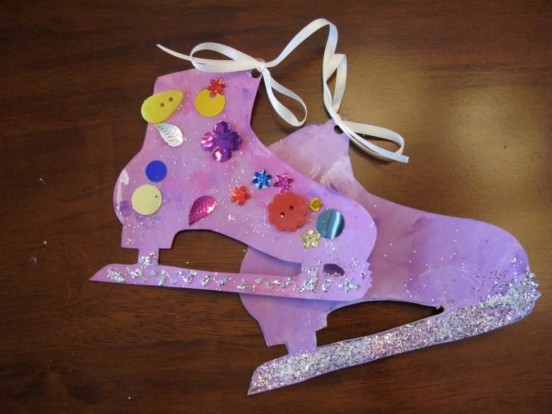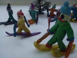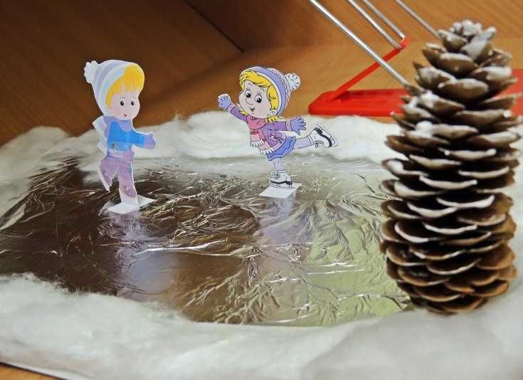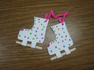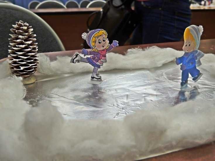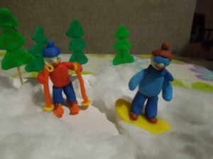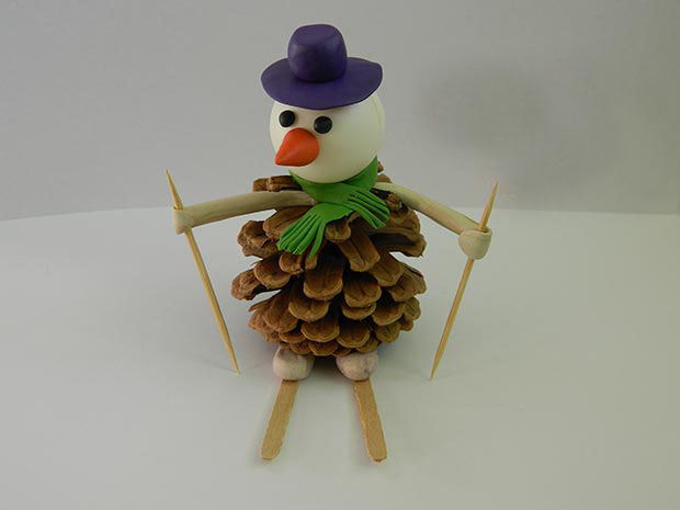 - Използвайте клечки за сладолед като ски, като ги залепите за човешките крака. В ръцете си оформяме две пръчици с черен цвят от конеца;