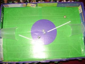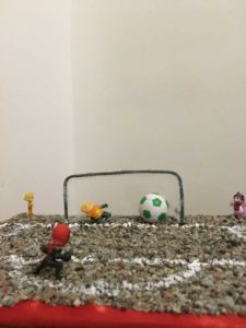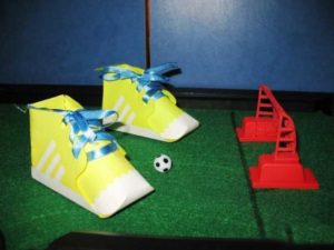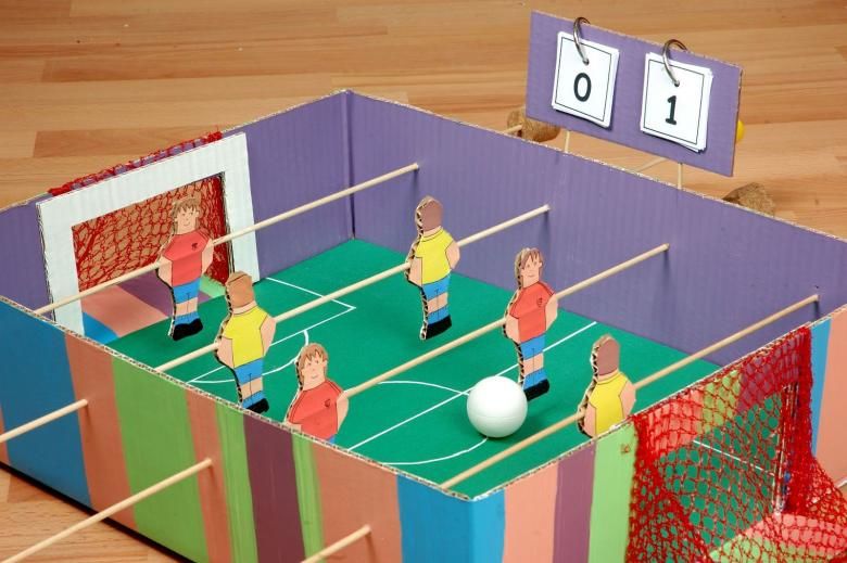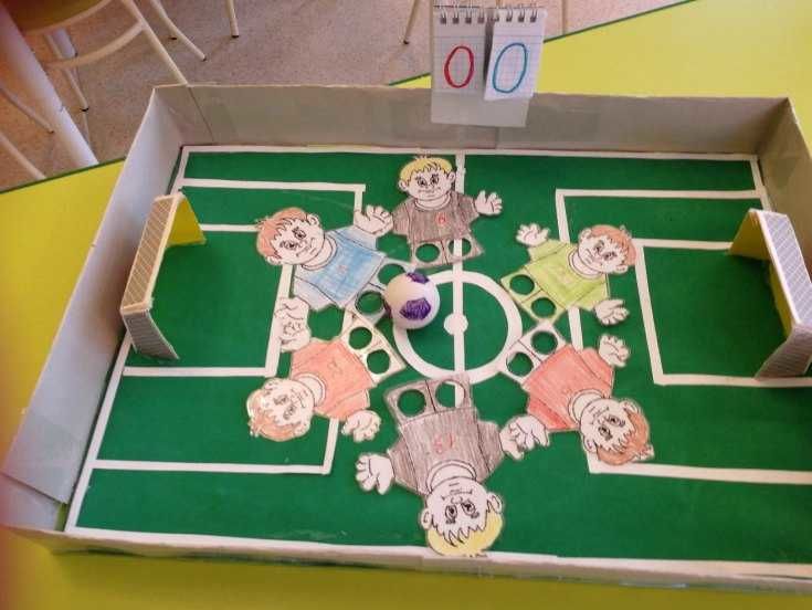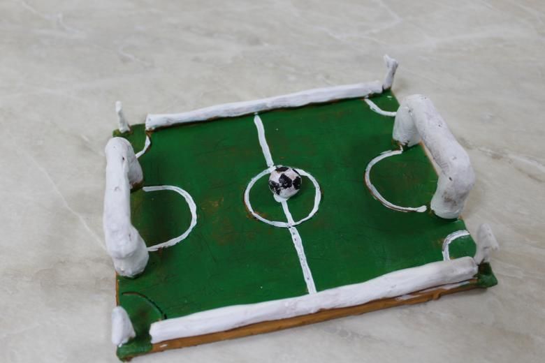 Мечтата на много деца е да получат собствено футболно игрище. Това е възможно, но ще бъде двойно по-приятно, ако го създадете сами. Ще ни трябват: ножица, пистолет за лепене и лепило, малка кутия, зелен картон, албум и цветни листове.