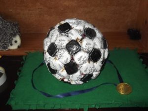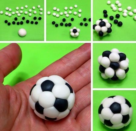 Сега нашата задача е да създадем футболна топка. Това ще бъде съвсем просто. Разделяме всеки вид тесто на малки топки, които сега комбинираме като първоначалната топка и оставяме тестото да изсъхне за един ден.