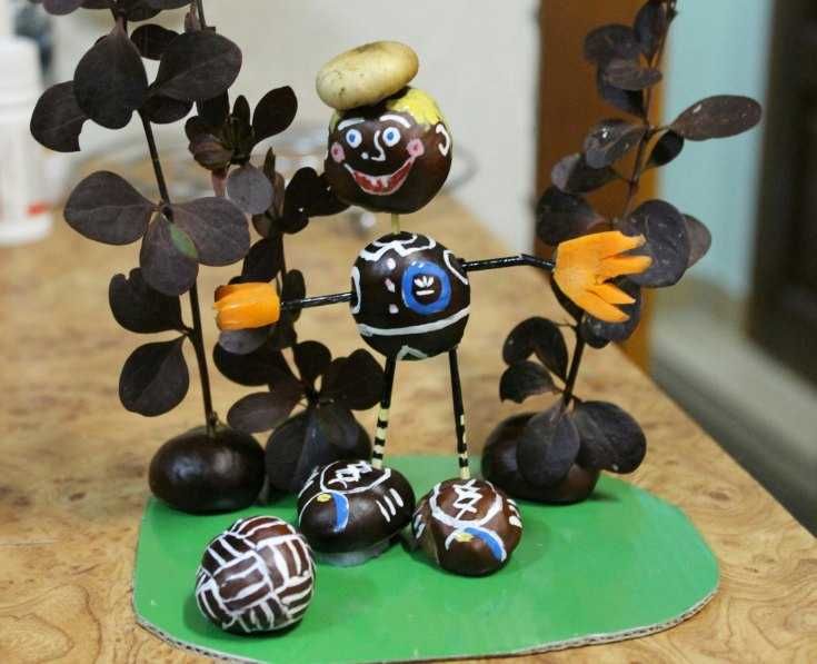 За занаятите можете да използвате клони, шишарки, зеленчуци и плодове, плодове, листа, зърнени храни, камъни и други подобни материали.