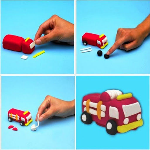 Глината за моделиране е отличен материал, с който могат да работят деца от детските градини и ученици от всички възрасти. За изработването на занаятчийска кола ще ви е необходим пластилин в различни нюанси: черен, светъл, яркочервен, жълт, син. Процедура на работа: