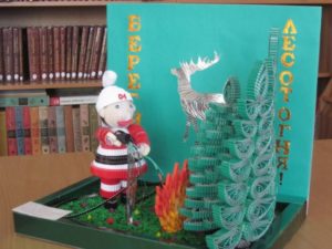 - Фигурките са залепени вътре в картата, като при отваряне стоят изправени и образуват огнище.
