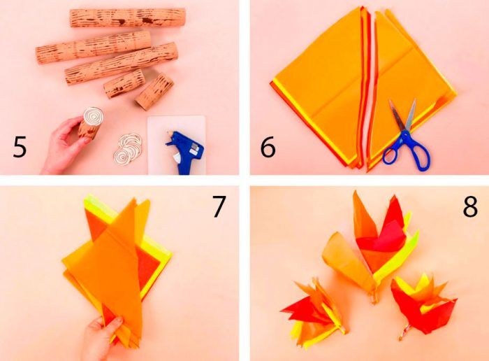 - Използвайте хартия, навита на тръбички, като дървени трупи.