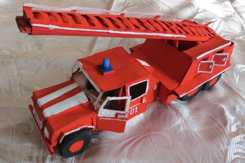 Пожарната кола, направена от хартия, може да се управлява от дете в предучилищна възраст: