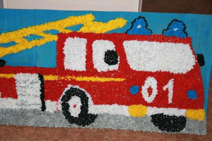 - Пожарната кола може да бъде направена от картон, а пожарникарите - от тесто.