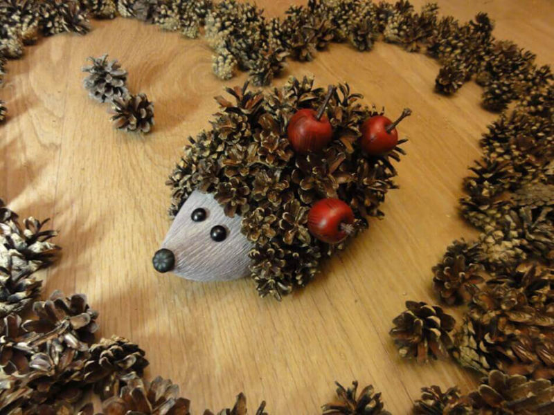 Шишарката всъщност е завършен таралеж, можете само да довършите рисуването на очите и да залепите краката и изделието е готово.