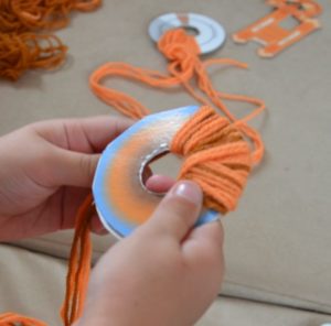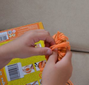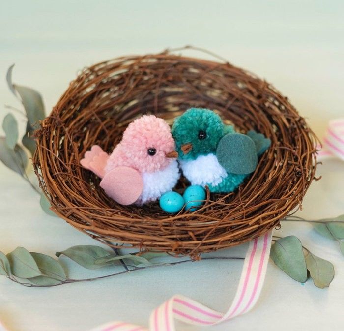 Съвет: човката, краката и мидата на пиленцето могат да се направят от хартия или картон. Очите могат да се направят от мъниста или да се купят готови очи за играчки. Използвайте въдица или конец, за да завържете помпоните без лепило.