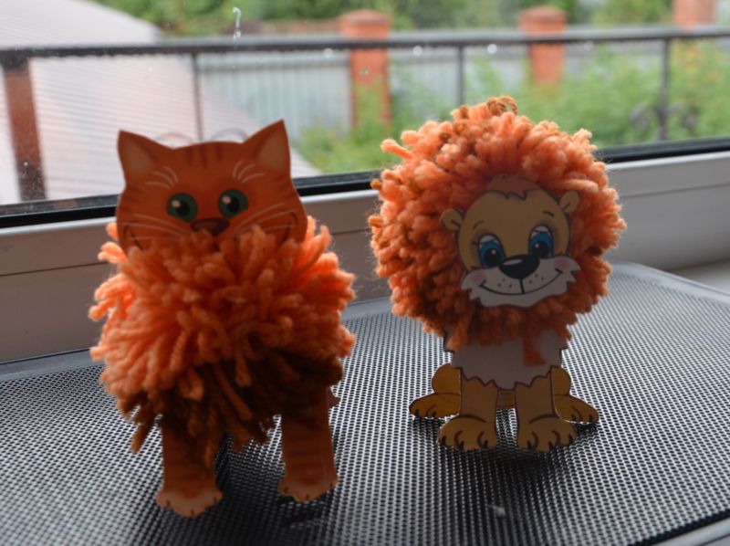 Лъвче от картон и помпон