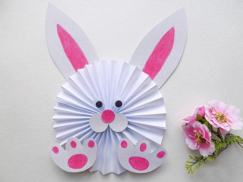 - Разгънете го и нарисувайте или направете лице на зайче от картонена апликация.