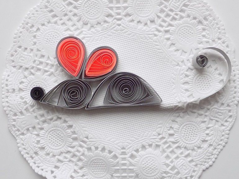 - За да придадете оригиналност на изработката, можете да направите мишката с техниката квилинг. За да придружите мишката, можете да направите парче сирене от картон или солено тесто/пластилин.