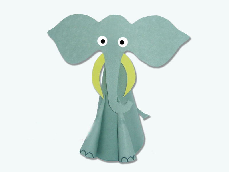 Правим шишарка от сив лист хартия, изрязваме две кръгли уши, опашка и хобот и закрепваме всичко това с апликация.