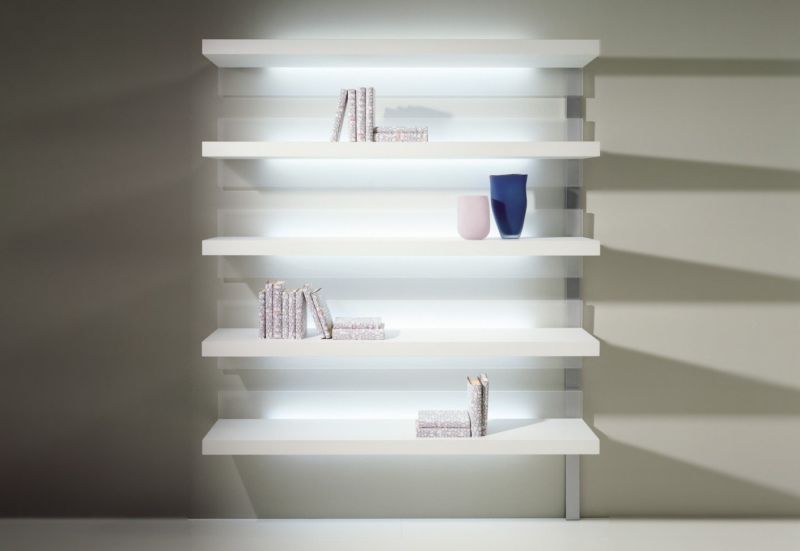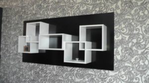 - Монтиране на стена. Монтира се на стената с различни крепежни елементи. Те спестяват повече място, особено в ъглите. Най-често срещаните видове са рафтове, стелажни шкафове, композиции от няколко отделно поставени единични рафта или различни оригинални конфигурации (триъгълници, квадрати, с форма на пчелна пита и др.).