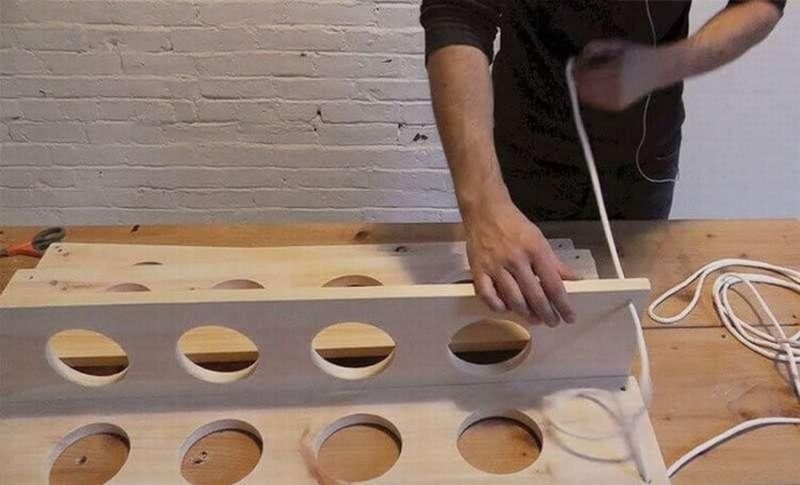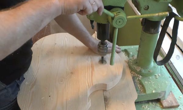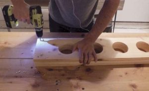 - с помощта на бормашина Форстнер или фреза направете в подготвените плочи отвори, съответстващи на размера на тръбите; в горния рафт те не трябва да са проходни;