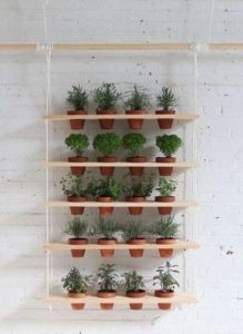 - Отстранен. Отлично решение за пестене на място. Такива конструкции се закрепват към тавани, прозоречни отвори, предназначени са за малки леки саксии с цветя. За по-голяма безопасност за закрепване към повърхността на тавана се използват здрави анкерни куки, към които се закрепват окачените рафтове. За закачалки, на които се закрепват рафтовете, се използват въжета, кожени ремъци, вериги, въжета и други подходящи материали.