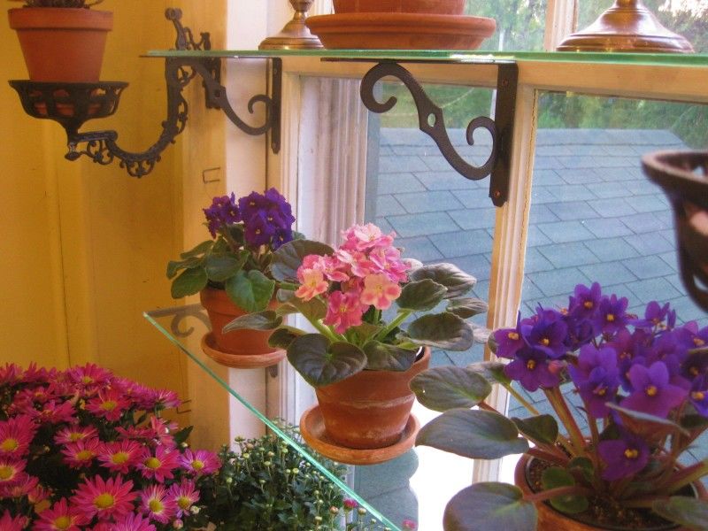 - Закалено стъкло. Прозрачните рафтове спестяват визуално място. Но те са подходящи само за леки, малки саксии за цветя. Стъклото не трябва да е по-тънко от 0,5 см. Те се прикрепят към метални рамки със специални скоби. В дървените рамки за тях се правят прорези, в които се поставят стъклата.