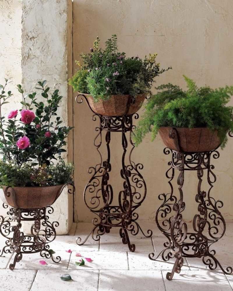 Повечето от тези рафтове се произвеждат като подови рафтове поради голямото им тегло. Рафтовете от ковано желязо за цветя на стената се изработват от малки и средни размери, като за тях се монтират специални крепежни елементи с висока якост. Стените също трябва да са достатъчно здрави, за да издържат тази тежест.