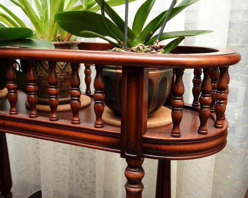 Подготовката на дървени части и сглобяването на рафтове от тях се извършва почти по същия начин, както при шперплата. Получават се дървени рафтове за цветя, които са по-здрави и имат по-голямо разнообразие от дизайн. За тях използвайте бар, дъски.
