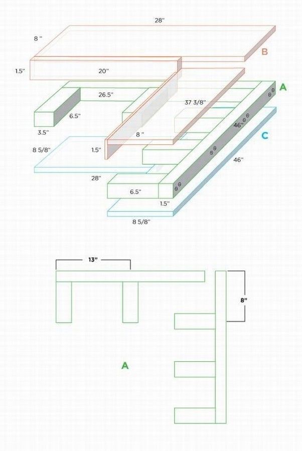 За направата на тези конструкции могат да се използват изрезки от нови ПДЧ или разглобени мебели втора употреба. За завършване на срезовете се изисква залепващ кант или Т-образен (U-образен) кант.