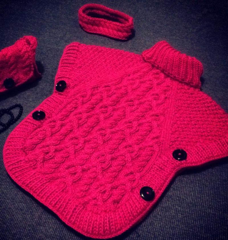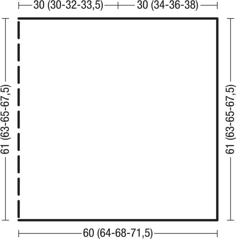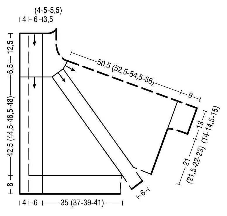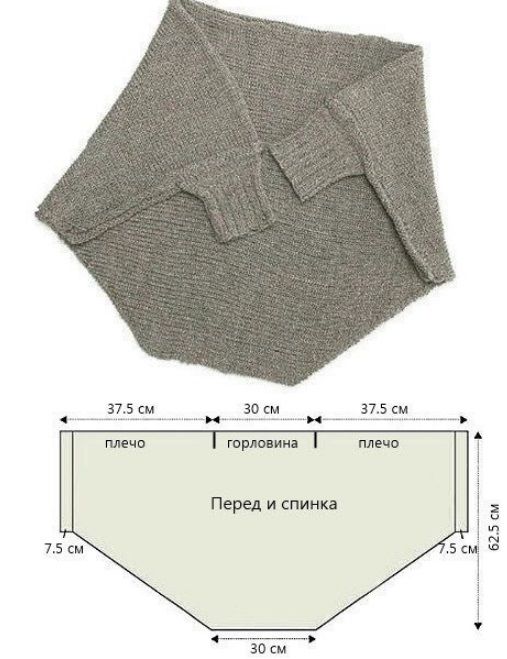 - Изплетете задната част за още 70 см и затворете бримките. Изплетете предната част с още 85 см и затворете бримките. Зашийте ръкавите.