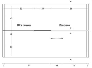 - Начертайте правоъгълник с височина, равна на дължината на парчето, и широчина, равна на сбора от измерванията DR + 1/3 OW;