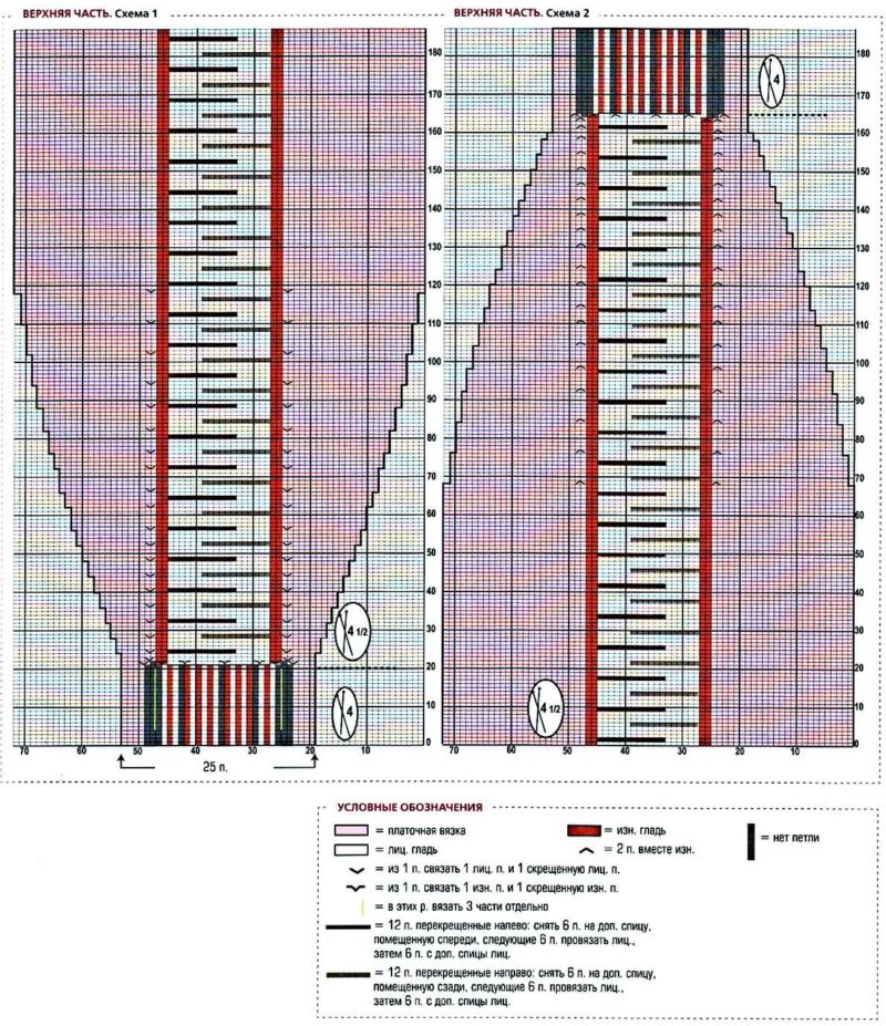 - 3 - 12 лица, реверс и др. Добавете по 3 бримки във всяка бримка. Изпълнете общо 50 съкратени редици. След това плетете до маркера в центъра на предната част. Изплетете две скъсени редици: