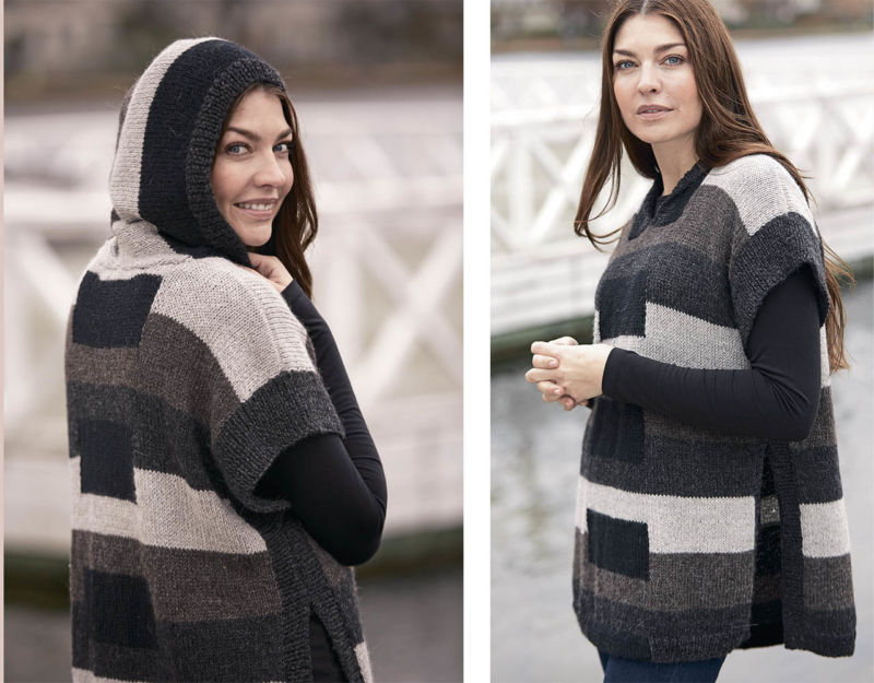 Пачуърк пончото може да се изплете във всякакъв модел или цвят. Пелерината, изработена от многоцветни квадрати, изглежда необикновено.