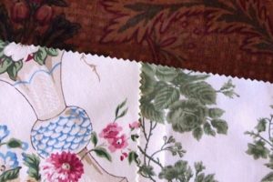 - Изрежете части от едноцветен плат с размер 1,5-2 см по-голям от този на рисунката. Ще зашием изрезките върху него.