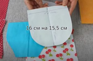- Изрежете четири правоъгълника от основния плат с размери 17x22 cm. Заоблете ъглите в долната част.