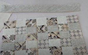 Необходими са ви три цвята текстил, уплътнение, кант и комплект за шиене.