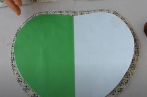 - Начертайте шаблон за половинките на кекса и го изрежете от основния и междинния плат.