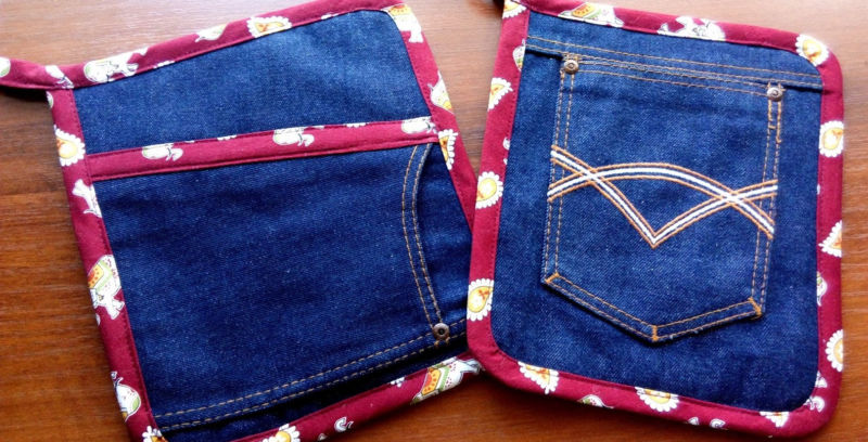 Вземаме стари дънки, изрязваме шикозни джобове с възможност за обработка. Поставете между тях малко лепкава вълна и ги зашийте.