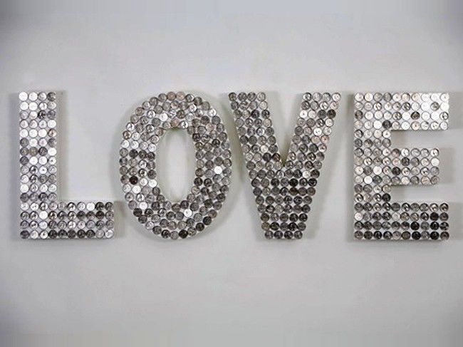 За декорация на стаята можете да направите триизмерни букви, например инициалите си. Изрежете буквите от картон и ги увийте в снопче или цветна прежда, като предварително напръскате всички части с лепило PVA. Залепете хартиени цветя, мъниста или копчета върху буквите.
