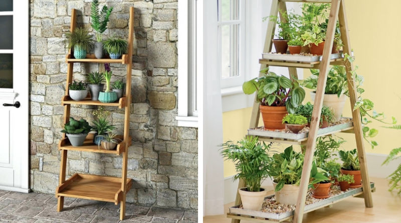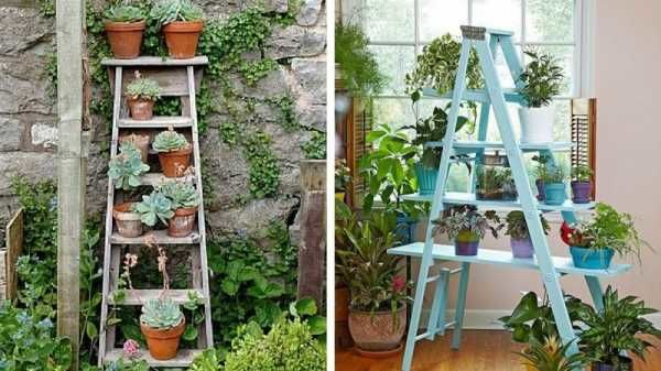 Хубаво е да се опиташ да вдъхнеш нов живот на стара, безполезна стълба. Те са с проста геометрична форма, така че са идеални за поставяне на саксии с цветя.