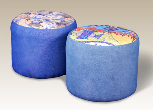 Направете дъното на столчето от картон или шперплат. Съединете всички части, увийте ги с плъстена вълна и залепете всичко заедно. Последната стъпка е да тапицирате османката с плат.