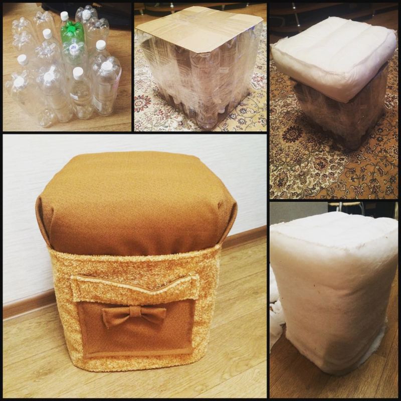 Пуф от шперплат и пластмасови бутилки
