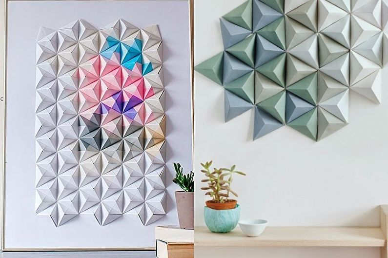 Стенните панели са изработени от картон, шперплат, тежък плат или имитация на кожа, стъкло или метал. Могат да се прилагат инкрустации, бродерии, плетене или дърворезба.