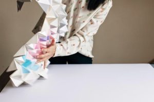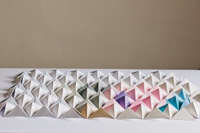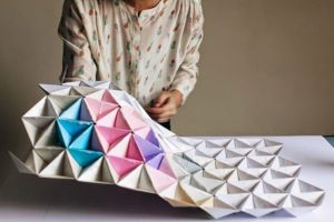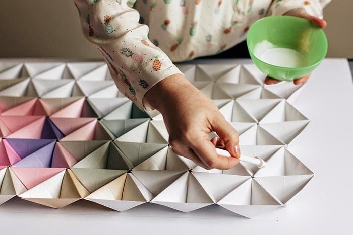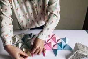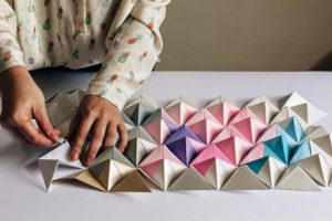 - Изрежете необходимия брой правоъгълници от бялата и цветната хартия и започнете да сглобявате модулите.