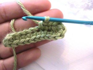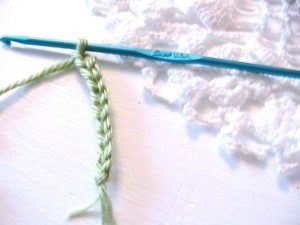 - Изработва се въздушна верига от 7 примки и един край - повдигащ.