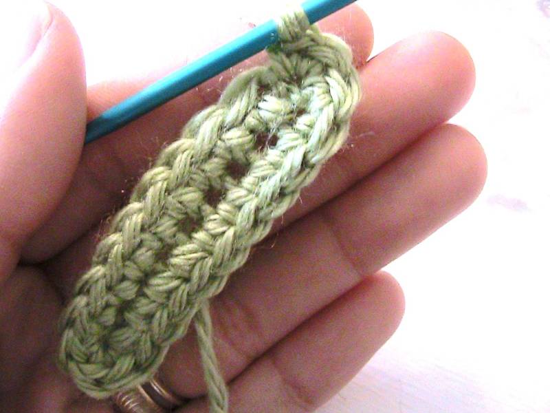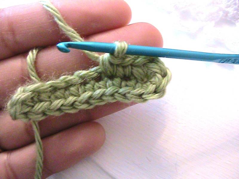 На втория ред, редувайки въздушни бримки, трябва да изплетете от тях 1 и 2 бримки. В този случай започнатата права лента веднага ще започне да се върти в кръг.