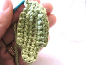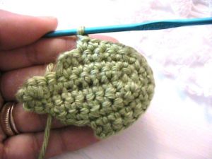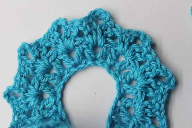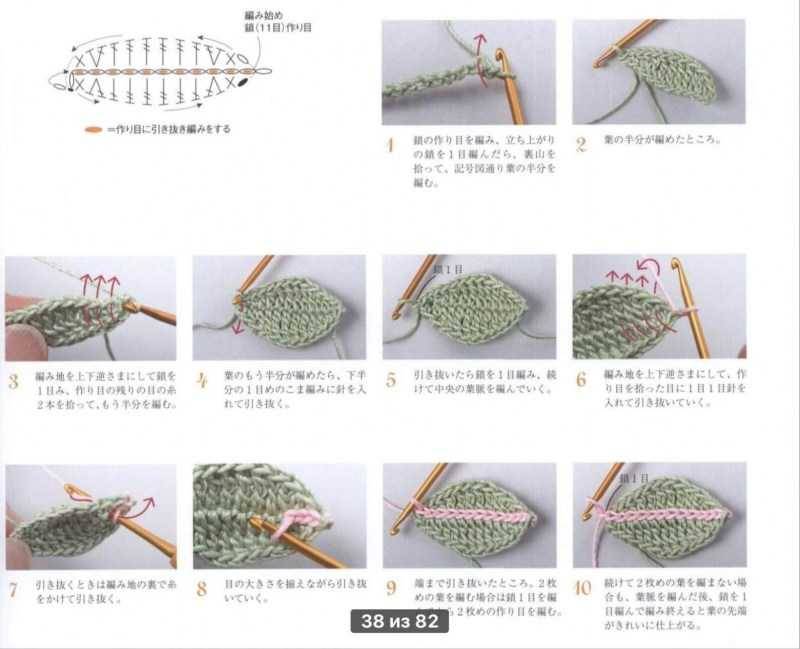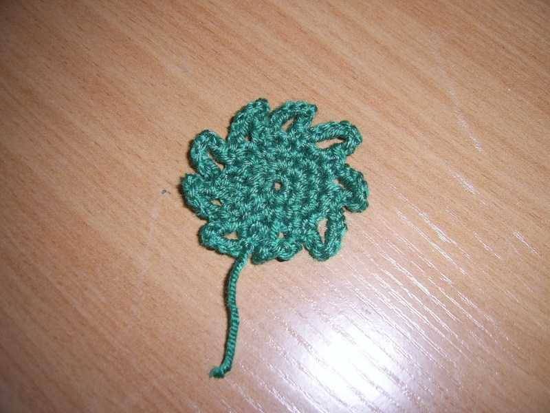 - Работата по всеки от няколкото елемента започва със средните въздушни бримки, на брой 2, които постепенно се разширяват с всеки следващ ред.