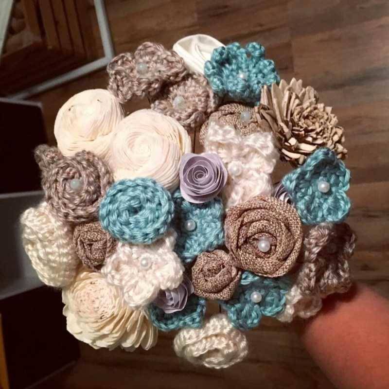 За по-пухкавите и обемни цветя могат да се използват прежди от вълна или смес от вълна, а за по-фините и тънки елементи са подходящи различни видове памучни, синтетични и копринени прежди.