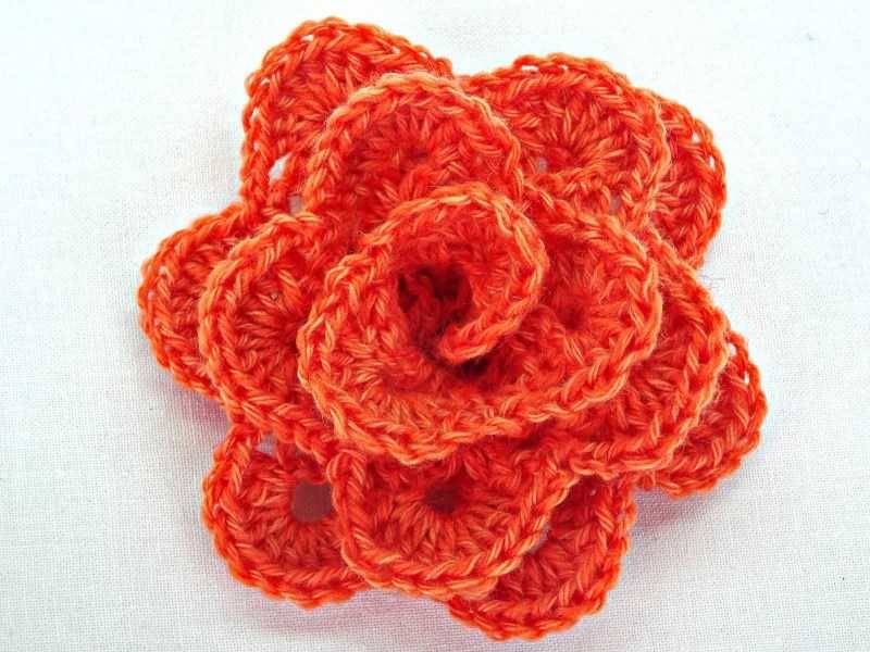 Плетенето на рози на една кука по метода на венчелистчетата отнема повече време на практика, но те могат да бъдат навити на пухкави, отворени цветя или затворени пъпки.