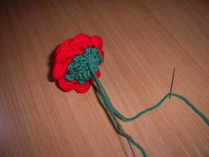 Ако желаете, можете да изплетете рози, като крайните листенца са по-големи от средните.