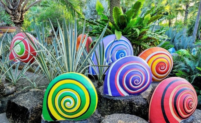 - Комплекс от вази в сайта - кофи с различни размери са зашити една за друга. Всяка от тях е облицована с камъчета и е изпълнена с пръст и цветя. Никой от гостите няма да предположи, че комплексът не е изграден от бетон. Практичен и евтин вариант за градината.