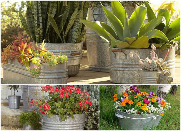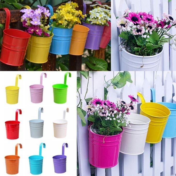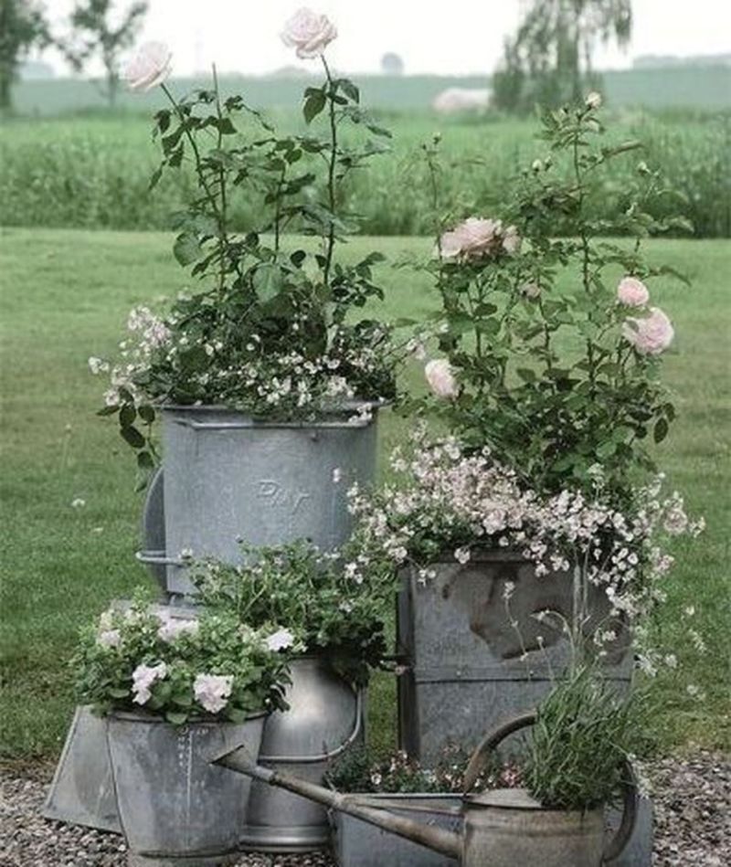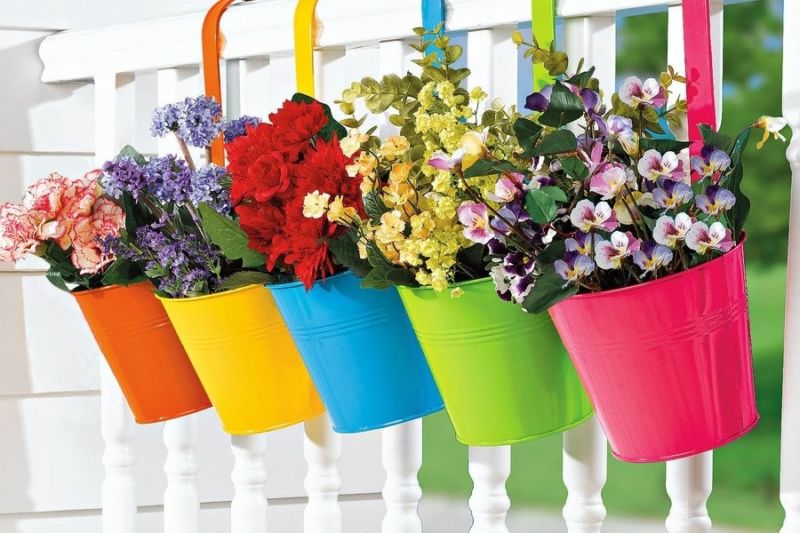 - Оригиналната цветна градина е направена от метални кофи - всяка кофа е заварена към малка арматура по такъв начин, че да създава впечатление за баланс. Всеки от тях е изпълнен с пръст и цветя. Изглежда много ефективно и стилно.