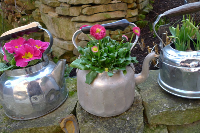 Креативността в градината не ограничава собствениците. Използвайте всички материали, които са останали в гаража или сервизното помещение след строителните работи и почистването.