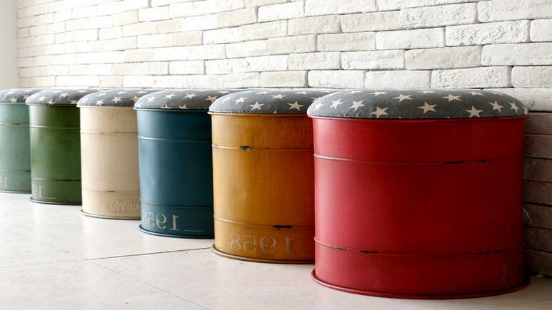 Алтернативно се използват железни варели, останали от доставките на торове или други суровини. Ако преди това не е издържала на силни химикали, тя се обработва и боядисва и се превръща в чудесен стелаж за партита.