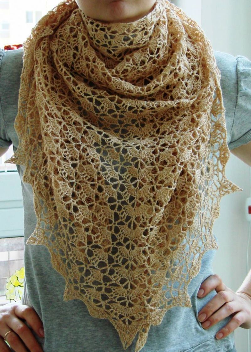 Шал, плетен на игли - несъмнено един от най-интересните елементи на женския гардероб. Шалът и кърпата помагат за създаването на лек, женствен и загадъчен вид.