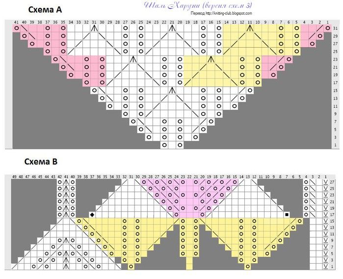 Моделите, с помощта на които се създават шалове и подобни изделия, имат отличителна черта - те са ефирни, имат тънка ажурна структура, но ясно изобразяват модела.