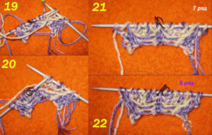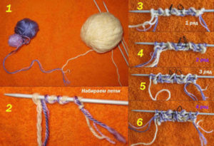 - Продължете да плетете с един конец. С всеки следващ ред броят на бримките на иглите се увеличава.
